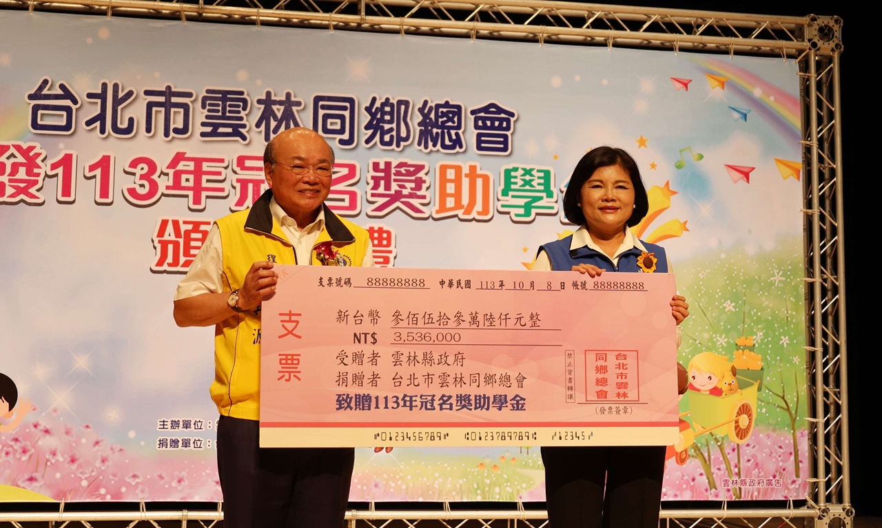 台北市雲林同鄉總會今天回母縣113年冠名獎助學金。