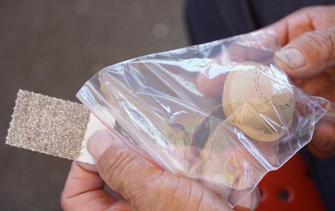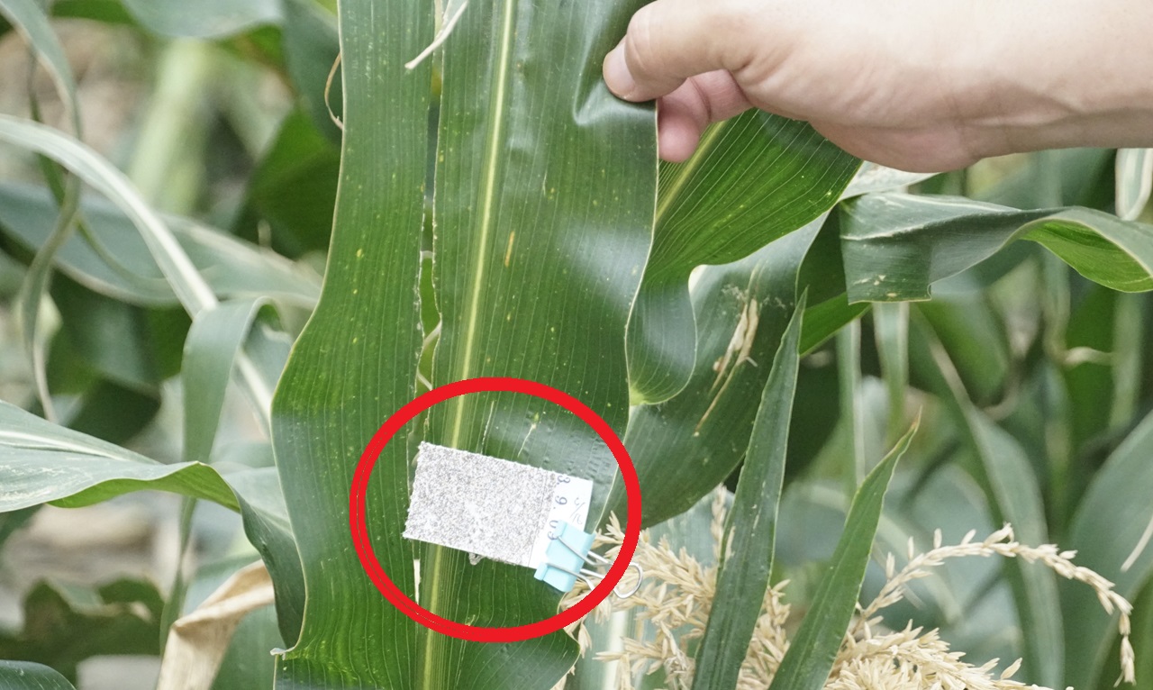 赤眼卵寄生蜂蟲卵片貼於玉米葉背面下方。