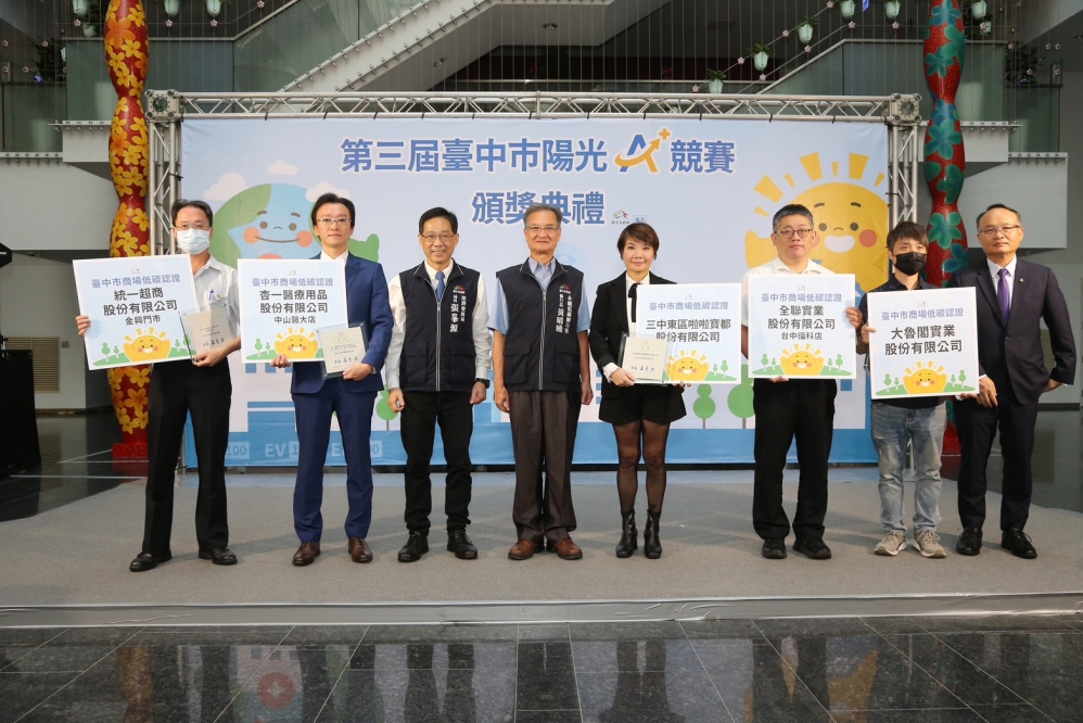 今年第三屆通過商場低碳認證的企業,包括全聯實業股份有限公司台中福科分公司、杏一醫療用品股份有限公司(中山醫大杏一美食生活廣場)、大魯閣實業股份有限公司、三中東區啦啦寶都股份有限公司及統一超商股份有限公司(金興門市)等5家商場,共同展現低碳執行績效,透過以大帶小,帶動更多商場加入淨零行列,讓節能低碳措施成為台中市商場新標配。