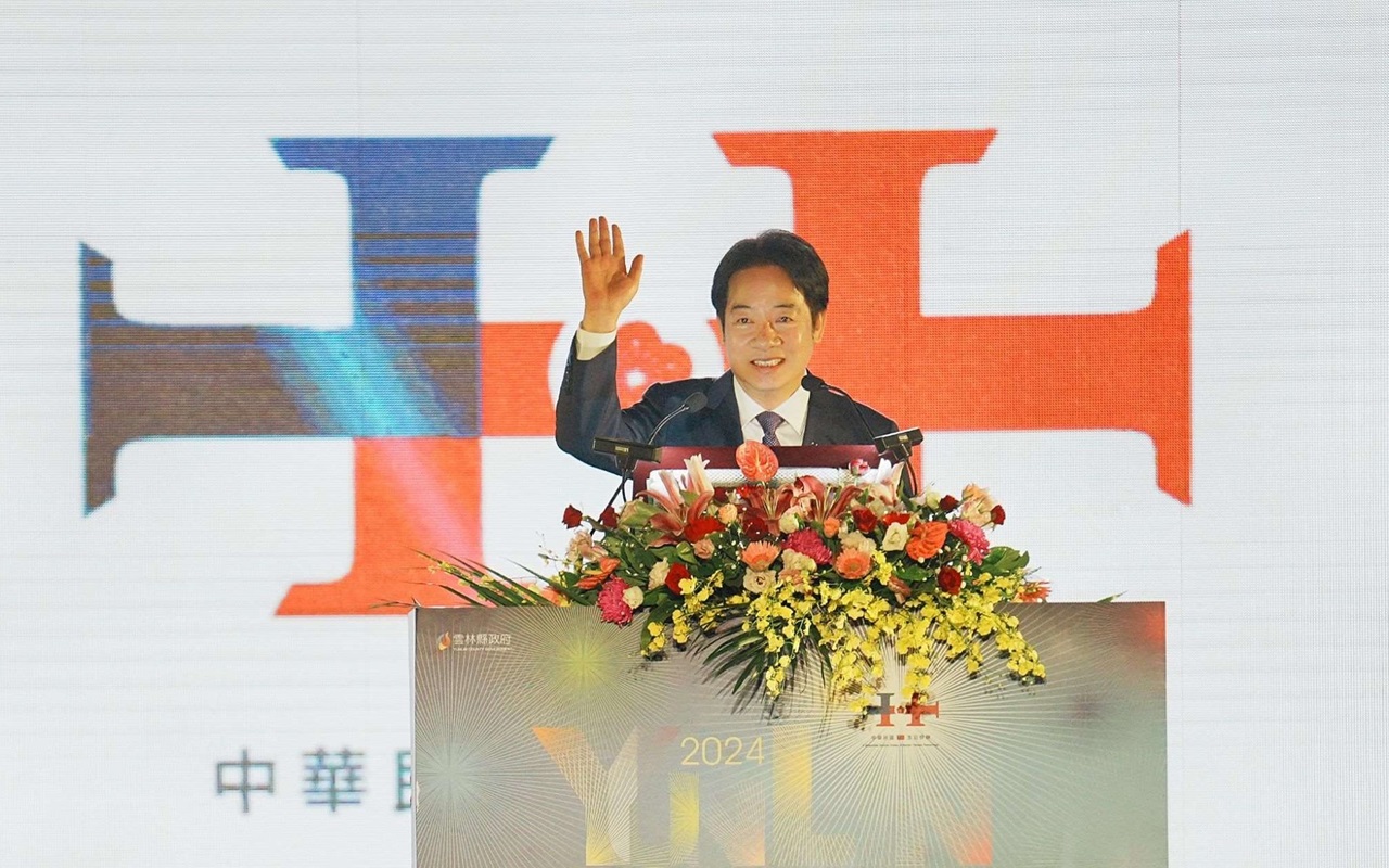 總統賴清德在晚會上感謝縣長張麗善為國慶焰火的籌備所付出的努力,成功讓國內外來賓見證了雲林的美好。(圖/記者蘇峰毅攝)