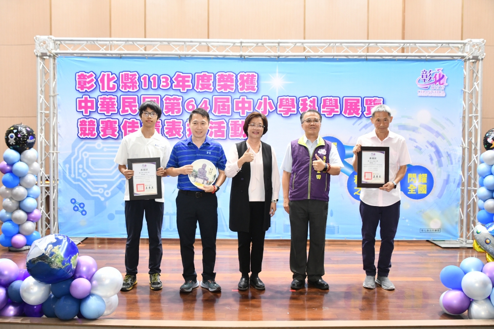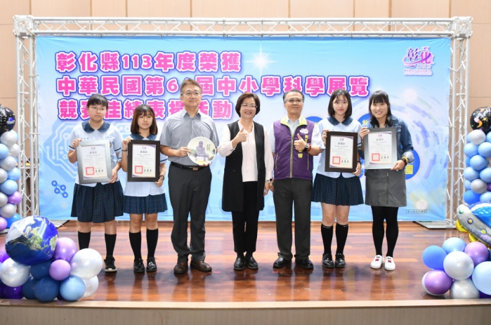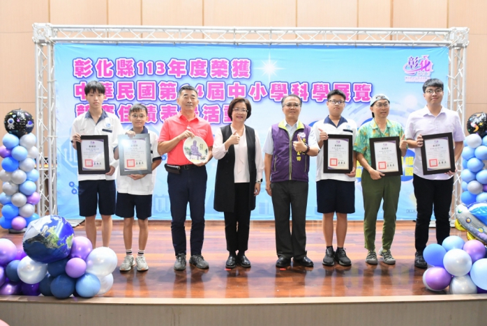 王縣長表示,「彰化不怕沒人才,只怕沒舞台」,彰化縣隊今年全國科展,國中小學獲8個獎項,總成績團體甲組(含六都)第二名,高中組獲7個獎項,為中區高中組獲獎數最高縣市,成績大放異彩。