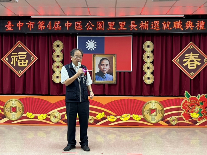 新任公園里長邱婉玲說明,感謝鄉親里民的支持與肯定,讓她順利當選公園里長,希望各位里長前輩不吝給予指導及協助,她也會與中區公所相互配合,讓公園里的里政工作推動更加順暢,她也會努力學習,把好的服務延續下去,努力達成里民交付的任務,打造優質溫馨的公園里。