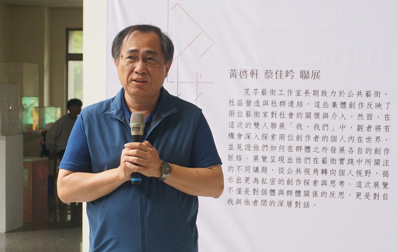 【記者蘇榮泉/雲林報導】國立虎尾科技大學於10月15日舉行「我,我們——黃啟軒、蔡佳吟聯展」開幕暨導覽活動,這次展覽以兩位藝術家的創作為中心,從公共視角轉向個人視野,深入探討個體與群體的關係,並透過藝術形式表現自我與他者之間的深層對話。
