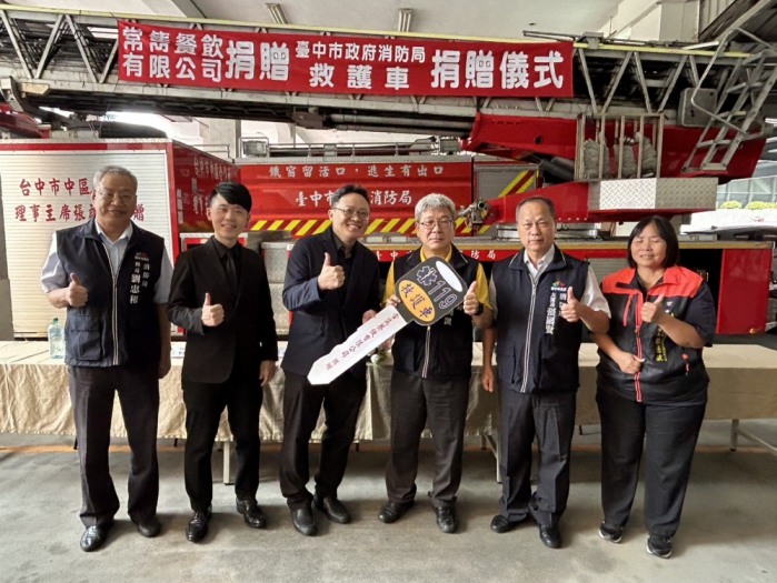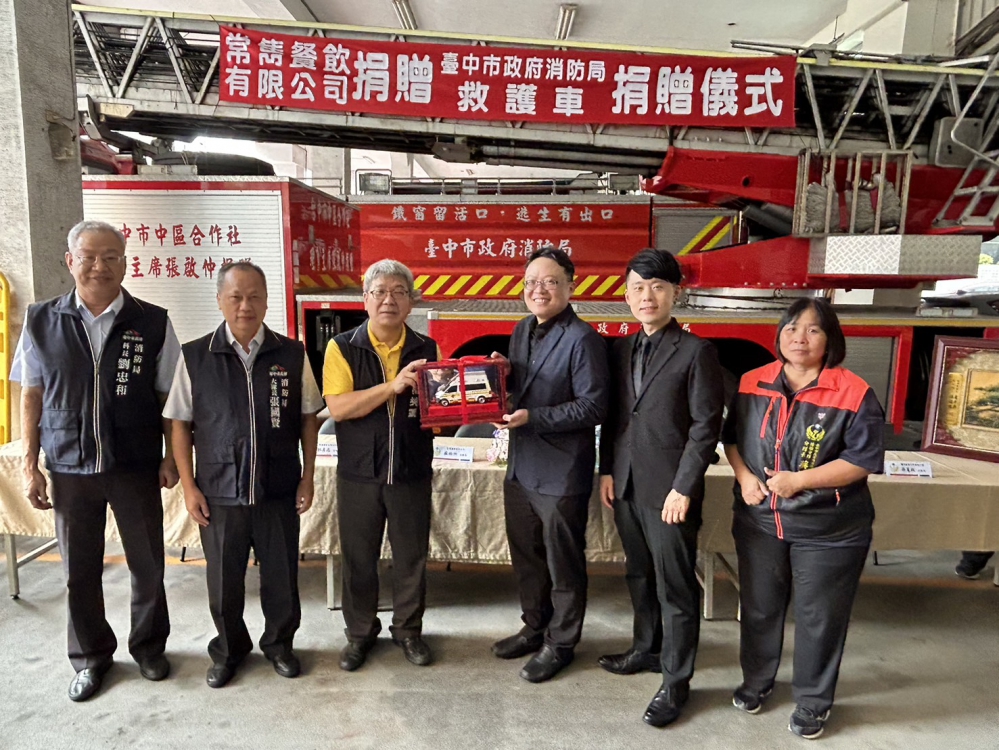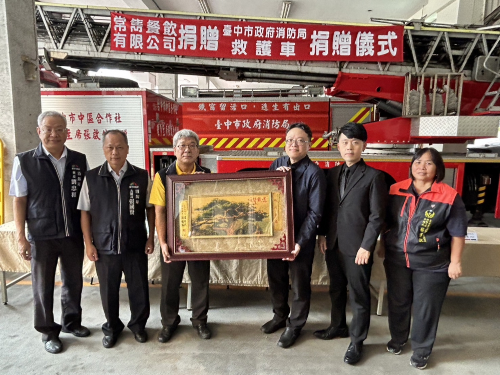 【記者林獻元台中報導】常雋餐飲有限公司秉持恆愛慈善的精神,熱心公益不落人後,為提升台中市緊急救護量能,該公司捐贈救護車及相關救護器材,17日上午在消防局第七救災救護大隊舉行捐贈儀式,由簡任技正楊純凱代表受贈,盼造福更多需要幫助的市民。