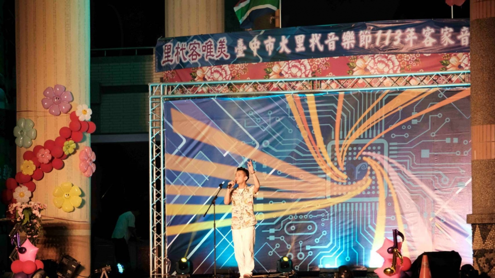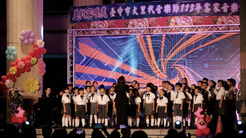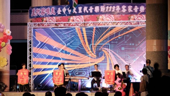 【記者林重鎣台中報導】台中市政府客委會與大里區公所共同舉辦「113年客家音樂會~里杙客唯美˙群客饗豐樂」活動,18日晚上在美群國小前庭登場,以多樣的音樂歌唱、舞蹈等表演形式,生動詮釋客家文化的深厚底蘊與多元風貌,吸引許多年輕朋友到場一同享受秋風颯爽的周末夜晚。