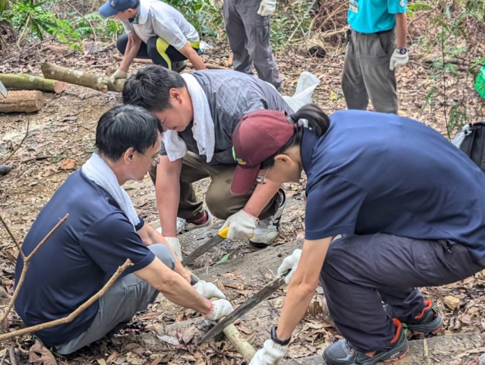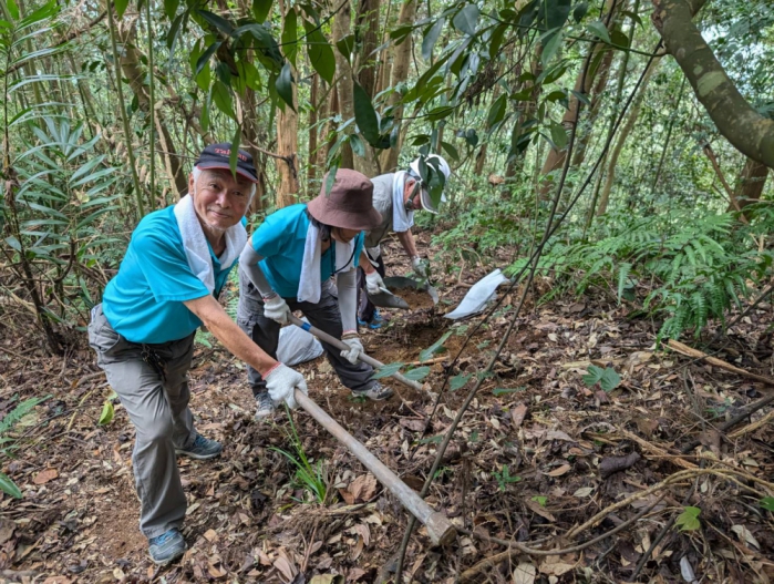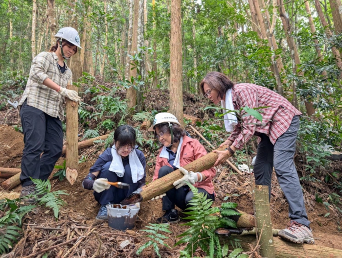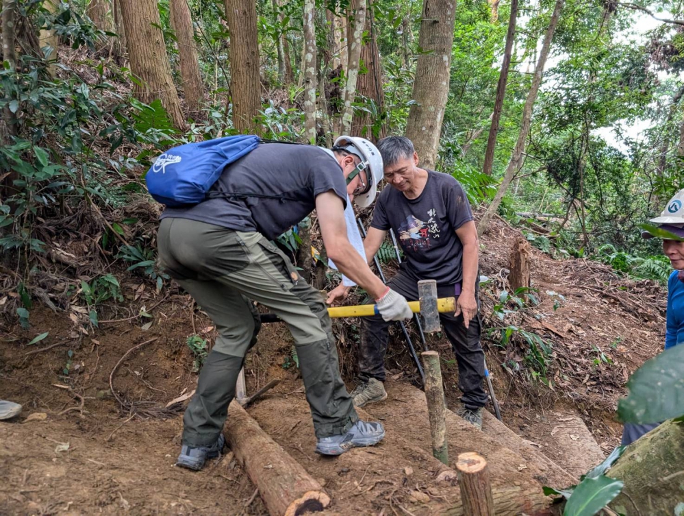 但轉念一想平常都是走別人做好的步道,這次可以做步道讓更多人走,內心真的是滿滿成就及感恩,也讓志工們從手作過程中學習並體驗到與自然生態和諧共存的工法,共築優質的森林步道。