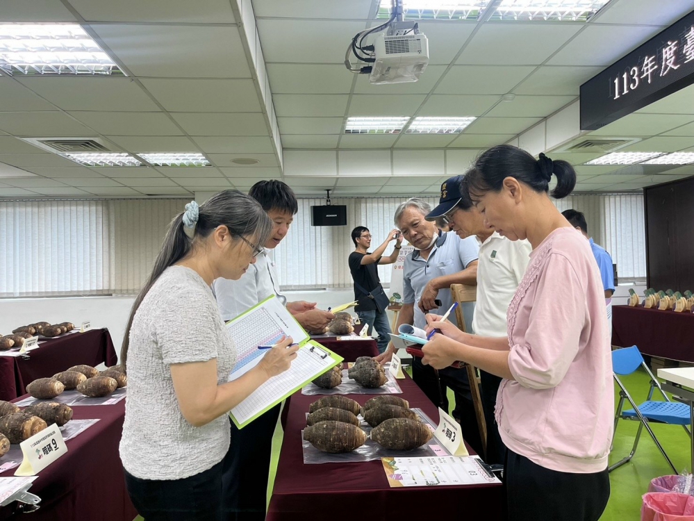 本次評鑑活動邀請農糧署中區分署張文美科長、農糧署中區分署臺中辦事處陳瑛主任、臺中區農業改良場蕭政弘副場長、中興大學園藝學系謝慶昌副教授及前中興大學陳本源技正等不同領域專家擔任評審委員,評審委員根據芋頭生鮮芋頭外觀整齊度、形狀、縱剖面及病蟲害情形,以及熟芋香氣、色澤、質地、口感等項目專業評比生鮮外觀及熟芋官能品評,