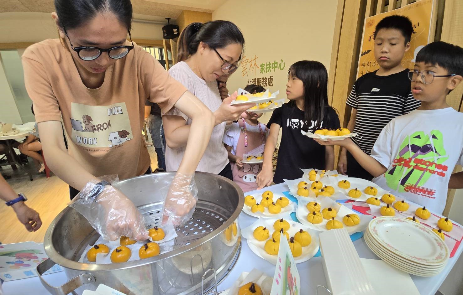 一個個金黃飽滿的南瓜甜糕,是雲林家扶小朋友們一起捏出來的成品。