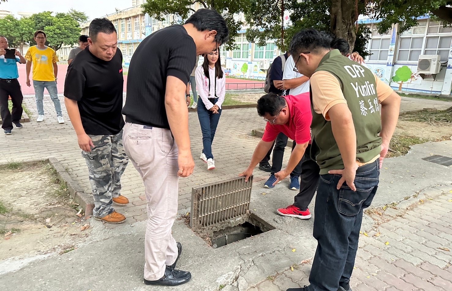 【記者蘇峰毅/雲林報導】因應近年氣候變遷帶來的突發暴雨,校園排水問題成為關鍵議題。許多學校因建設年代久遠,缺乏現代化的汙水下水道系統,導致校內汙水無法順利排出,影響環境衛生。為改善校園安全,立委劉建國於23日邀請教育部國教署副組長蕭奕志、高中組科長郭友銘,與崙背鄉長李泓儀、麥寮鄉公所特助許文吉及多位雲林縣議員,前往多所學校進行校園水溝蓋安全會勘。