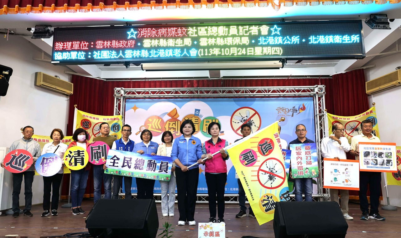【記者蘇榮泉/雲林報導】為防止登革熱的病媒蚊——埃及斑蚊在北港鎮繁衍越冬,雲林縣衛生局於10月24日在北港鎮老人會館舉辦「消除病媒蚊社區總動員」授旗誓師活動。縣長張麗善授旗給北港鎮鎮長蕭美文和各里長,呼籲當地居民全力投入「巡、倒、清、刷」的防疫工作,徹底消除病媒蚊的孳生源,防範登革熱疫情蔓延。