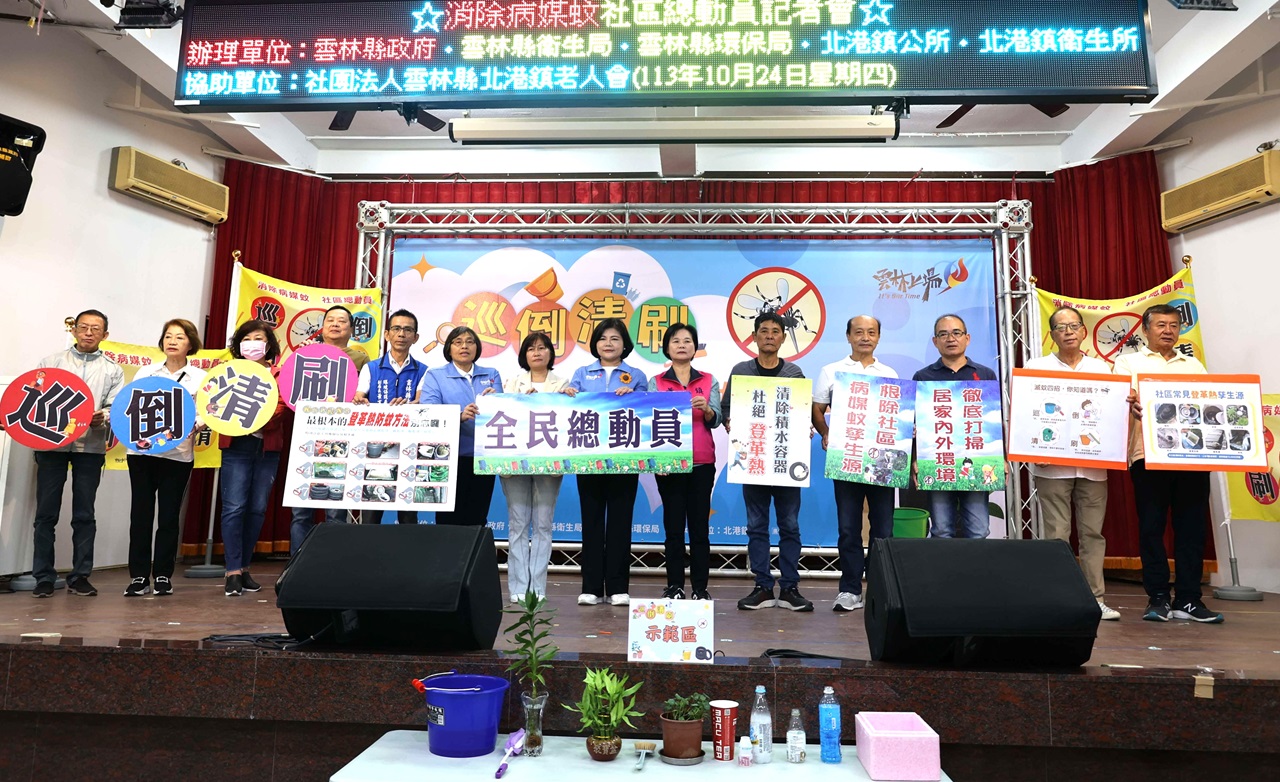 全民動員,全力滅蚊。衛生局長曾春美指出,埃及斑蚊比白線斑蚊具有更高的登革熱傳染力,因此防治難度也更高。縣衛生局與疾管署合作,針對北港鎮9個高風險里,共2402戶家戶進行孳生源清除行動,並藉由「以公帶私」的方式訓練里長、鄰長、志工及里民,全面動員。她強調,只有家戶內外環境徹底清潔,才能有效阻斷病媒蚊的繁殖,降低登革熱的傳播風險。
