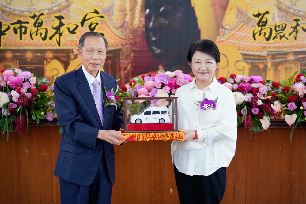 盧秀燕感謝萬和宮善盡社會責任,方便身心障礙朋友就醫、交通接送和社會參與,並祝福萬和宮香火鼎盛。