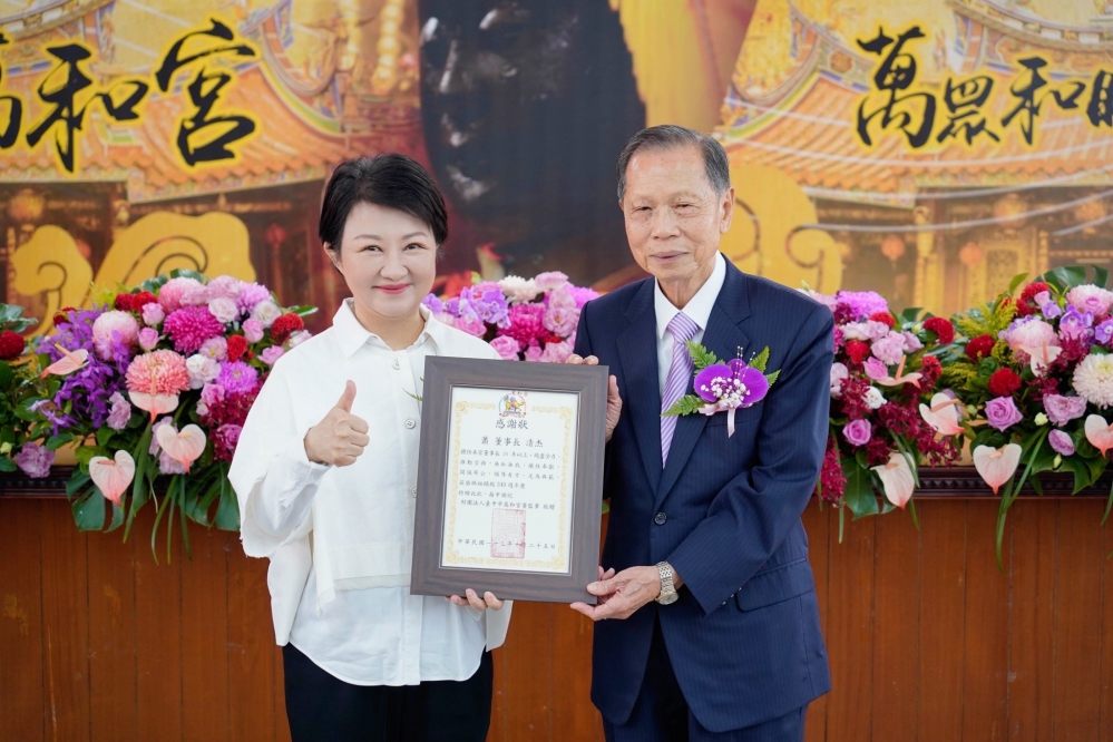 曾連任4屆台中市議員的萬和宮常務董事陳阿水,也以個人名義捐贈復康巴士,盧秀燕感謝阿水董事樂善好施、熱心公益,年輕時為農民發聲、為地方爭取建設;現在退而不休,仍活躍於社團,樂當斜槓「歐吉桑」服務鄉親,精神令人感佩。