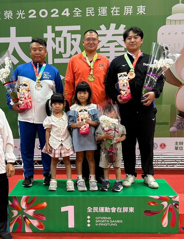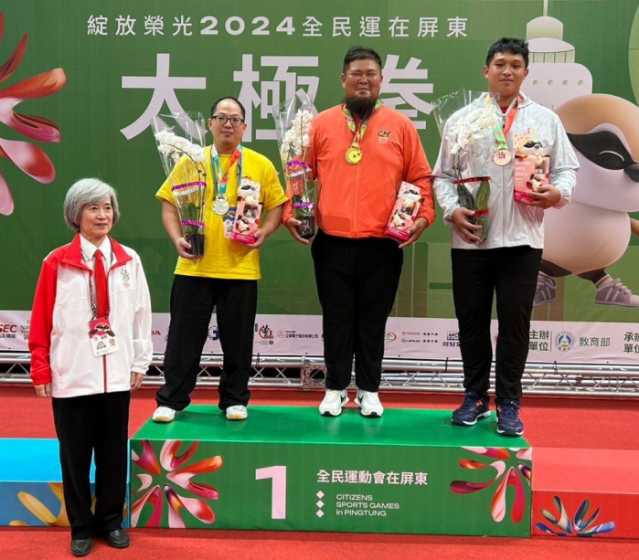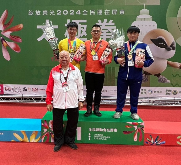 銀牌選手是趙淇楓的男子組套路99式和陳超翔男子組推手第三級。銅牌選手是昌靖淳的女子組套路37式太極拳,黃朝卿的男子組推手第一級。