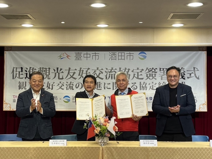 【記者林獻元台中報導】台中持續深化對日觀光交流,市府觀光旅遊局25日偕同台中市國際觀光發展協會,代表官方及民間分別與日本山形縣酒田市及其民間觀光組織一般財團法人酒田DMO簽署「促進觀光友好交流協定」。副市長鄭照新出席表示,台中十分重視國際城市交流,市府將與更多城市加強合作關係,將台中之美行銷至國際舞台。