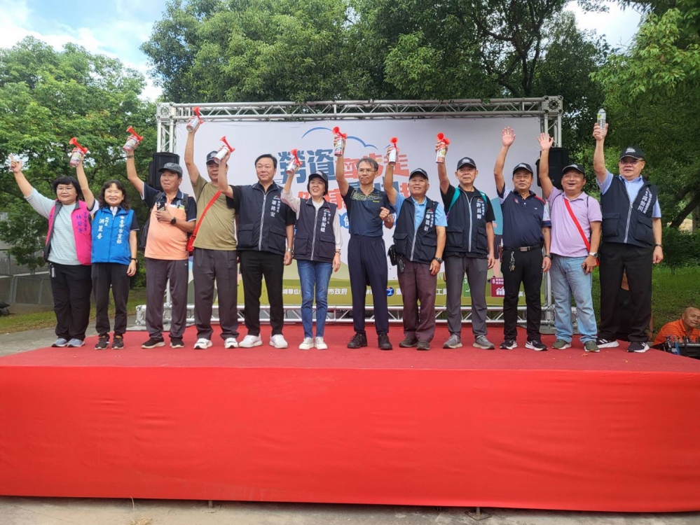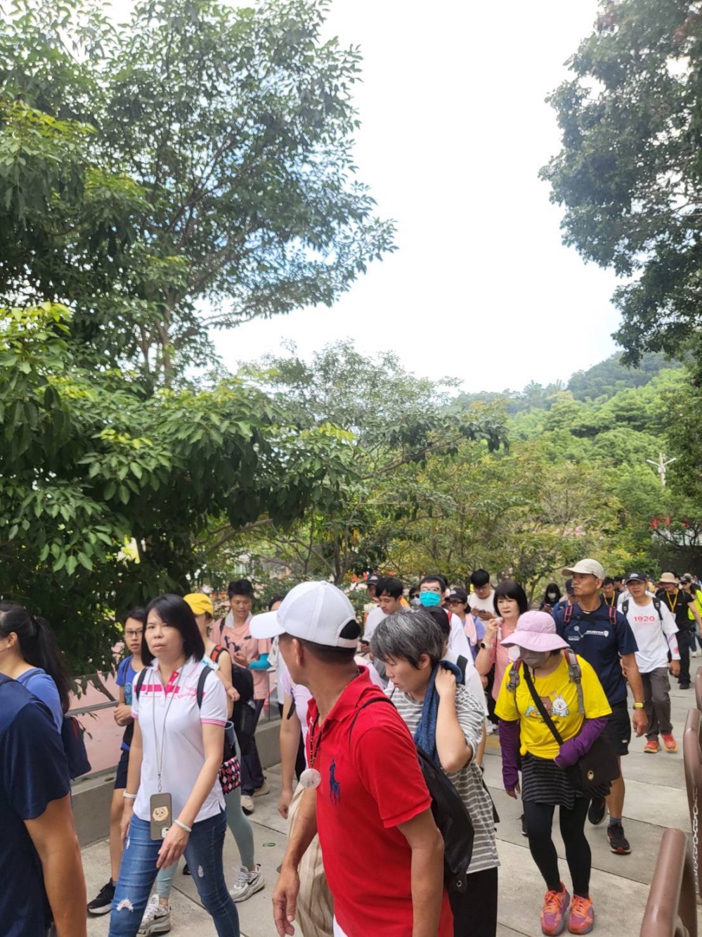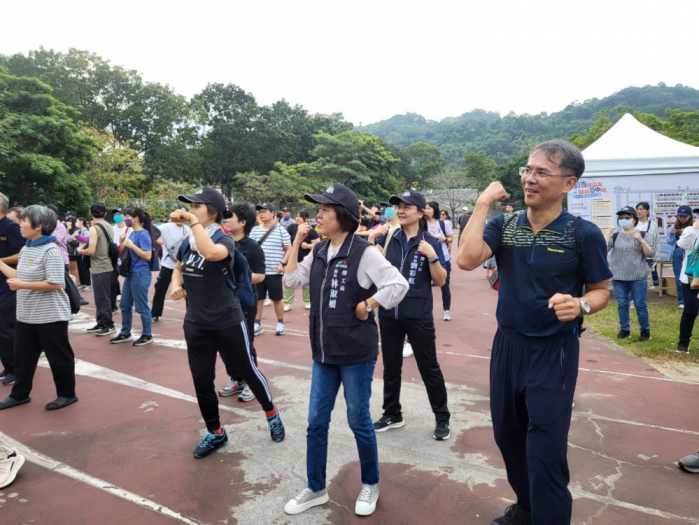 林淑媛說,此次健行路線自九二一地震教育園區起走,先由台上的健身教練帶領大家伸展筋骨、拉拉筋,齊聲高喊「勞資齊步走,健康台中趣」後鳴笛,宣告活動正式開始!