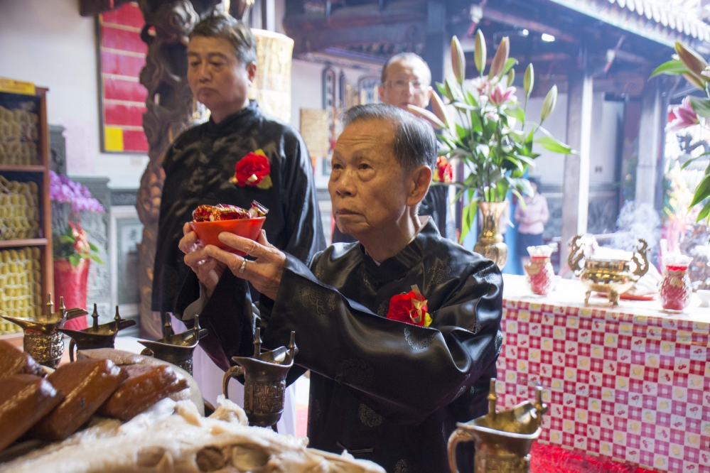【記者林獻元台中報導】欣逢媽祖鎮殿340週年,台中市萬和宮27日依循古禮舉行莊嚴隆重三獻禮,包括來自北中南部60餘友宮均組團祝賀,熱鬧非凡。