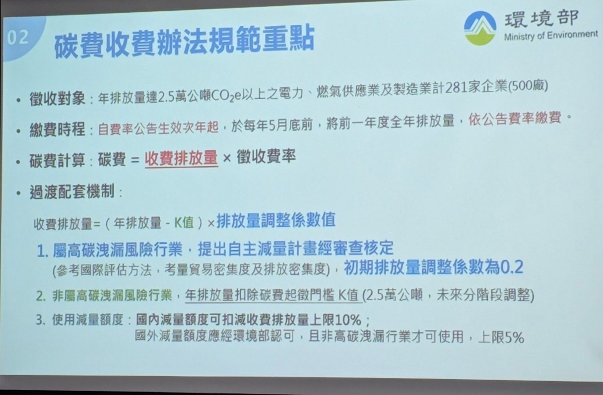 碳費開徵將使生產成本增加,進而影響物價上漲,因此提供具體的減碳實例,讓企業參考,提升節能減碳的效率。(圖/記者蘇峯毅攝)政府對此表示,碳費制度的實施需以穩定產業轉型為前提,會持續舉辦座談會與產業界保持密切溝通,期望共同合作實現減碳目標,為產業創造良好的適應環境。各界也呼籲企業儘早布局減碳策略,提升競爭優勢,應對未來挑戰。