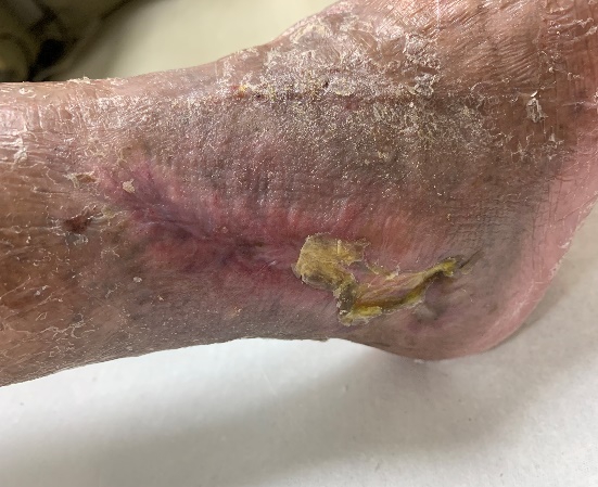 今年二月中劉姓老翁到衛生福利部豐原醫院整形外科求治,主因踝傷口久久不癒合且越來越嚴重情形,由整形外科蔡政龍醫師診視後建議會診心臟血管傷口外科主任張耀中醫師,經張耀中細心問診後,發現劉姓老翁有多年糖尿病病史,卻沒有重視傷口照護問題導致傷口快速惡化。