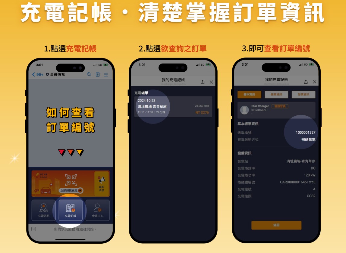 星舟快充系統全面升級,充電記帳功能清楚掌握訂單資訊。