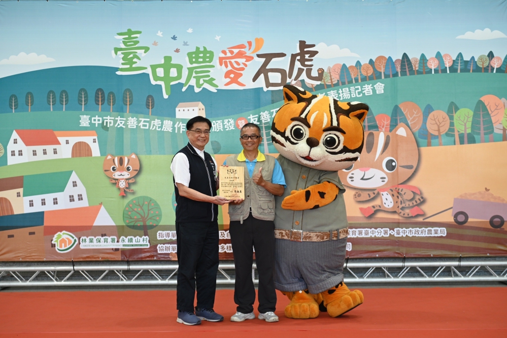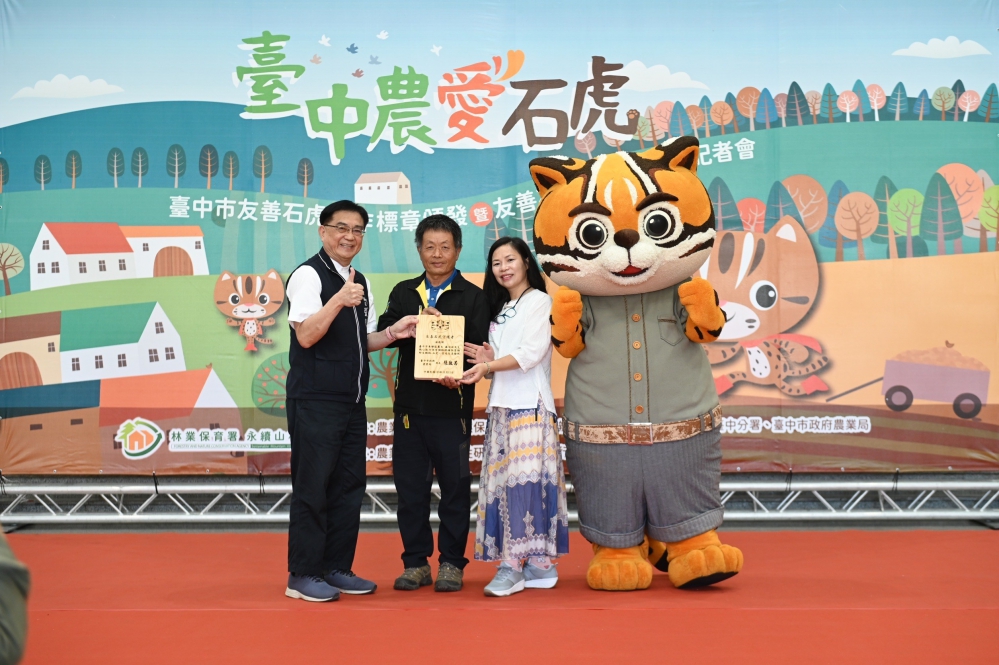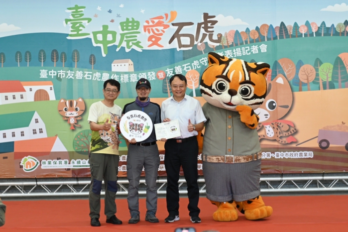 台中市政府農業局也特別針對參與友善農地、巡護監測石虎生態服務給付達五年,且拍到石虎影像的農友及巡守隊進行表揚,由局長張敬昌頒贈「友善石虎守護者」獎牌,肯定他們多年來在石虎保育中的貢獻。期待透過農友與民間團體共同耕耘的友善棲地,石虎得以安全覓食與棲息,公私共同守護之下提升石虎棲地品質並保護臺灣的珍貴野生動物。