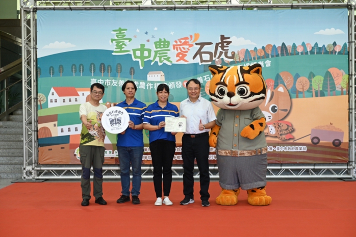 今年通過「友善石虎農作」標章認證的農友為陳愛萍、陳其忠、田家瑞、劉庭余、陳錦賜、廖祥志、巫石祥、邱俊偉、楊玉卿共9位,他們從臺中分署長張弘毅及生物多樣性研究所長楊嘉棟的手中獲頒標章,感謝所有友善石虎農友的付出,通過標章的農民需取得有機、綠色保育標章或產銷履歷等驗證,同時保留石虎所需草相,避免使用毒藥、獸鋏及不放養犬貓等友善行動,提高石虎的棲地品質,讓石虎活動與覓食更加安全。