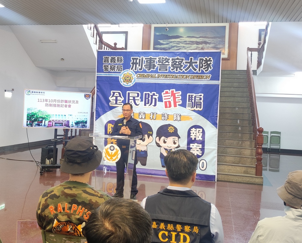 在打擊詐欺犯罪部分,嘉義縣警察局今(113)年1月至10月偵破詐欺集團36件、逮捕306人,查扣不法所得722萬8,964元;攔阻詐欺件數則有162件、8,257萬5,214元,較去(112)年同期增加1,448萬3,378元;另外10月28日嘉義縣警察局破獲假投資詐騙案,以「請君入甕」方式誘捕面交車手,再沿阿里山公路發現監控手車輛,隨即用車輛夾擊攔截圍捕,共逮捕嫌犯3人、查扣贓款新臺幣49萬6千元、車輛、手機及毒品等贓證物。