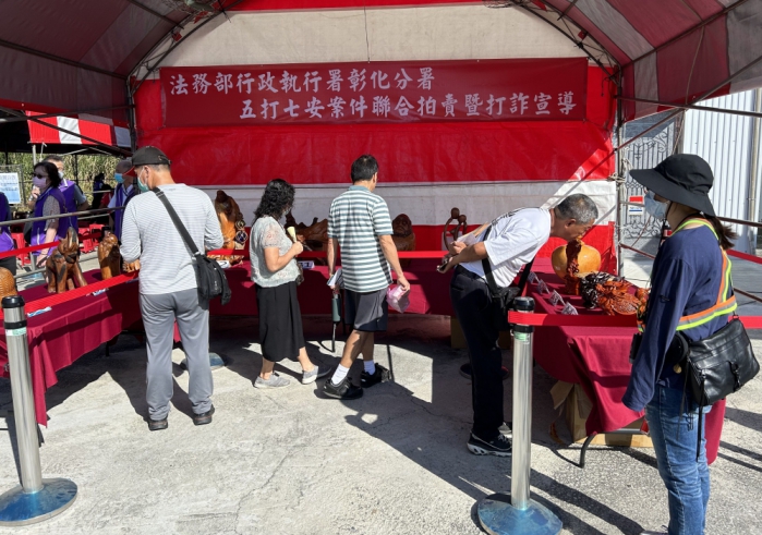分署發言人江佳蓉指出,配合法務部行政執行署各分署﹁五打七安案件聯合拍賣暨打詐宣導專案﹂,彰化分署於11月11日舉辦﹁動產及不動產聯合拍賣會﹂,動產聯合拍賣會地點在花壇鄉彰化地檢署車輛保管場,地檢署檢察長張曉雯和分署長郭景銘均到場,給雙方團隊加油打氣,顯示彰化分署和檢察署合作無間的精神。