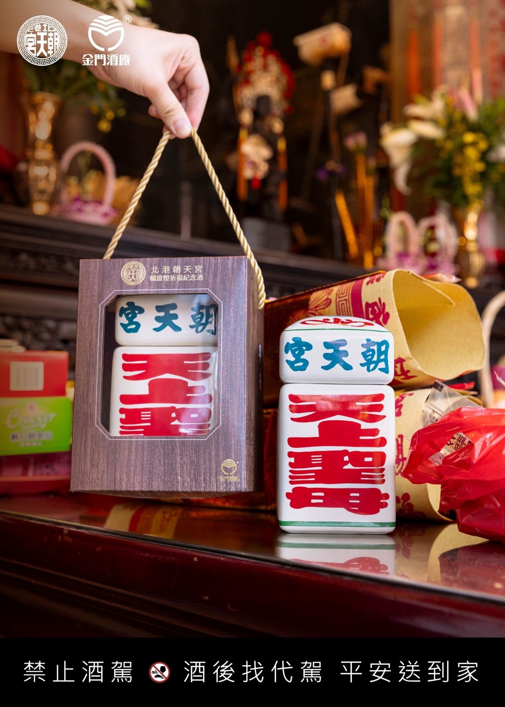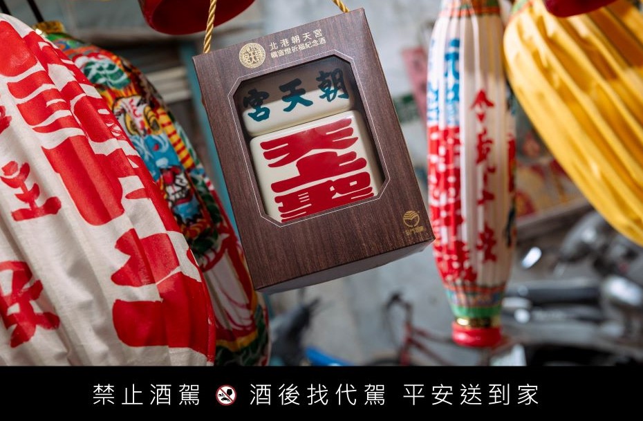 為慶祝北港朝天宮建廟330週年,金門酒廠再度聯名推出獨具文化與收藏價值的「北港朝天宮轎窗燈祈福紀念酒」。(圖/北港朝天宮提供)