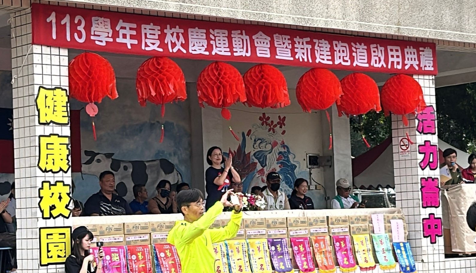 全校師生與當地民眾今天共同參與校慶運動會,孩子們在嶄新的跑道上跑步、跳遠,現場充滿歡笑聲,展現了對這項全新設施的喜愛。社區居民也到場參與,對地方教育環境的提升表示高度肯定。