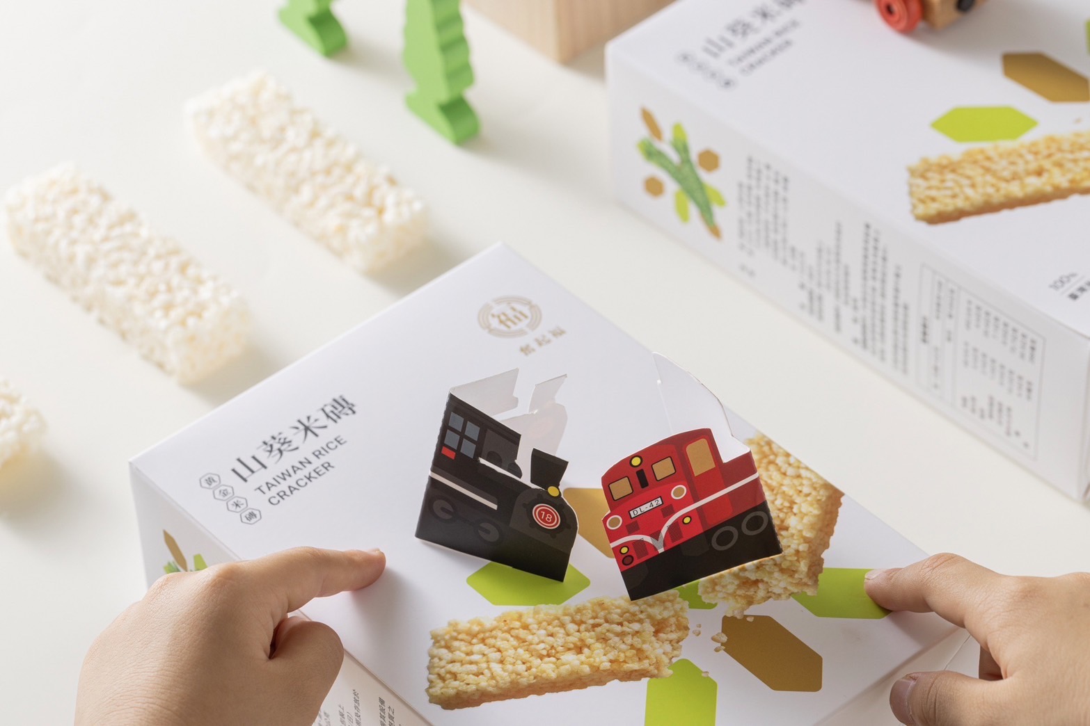 ▲永續獎鼓勵業者發揮巧思,在包裝設計上參考紙相撲之概念,融入阿里山小火車、梅花鹿之元素,整體產品包裝更具在地意象及永續性