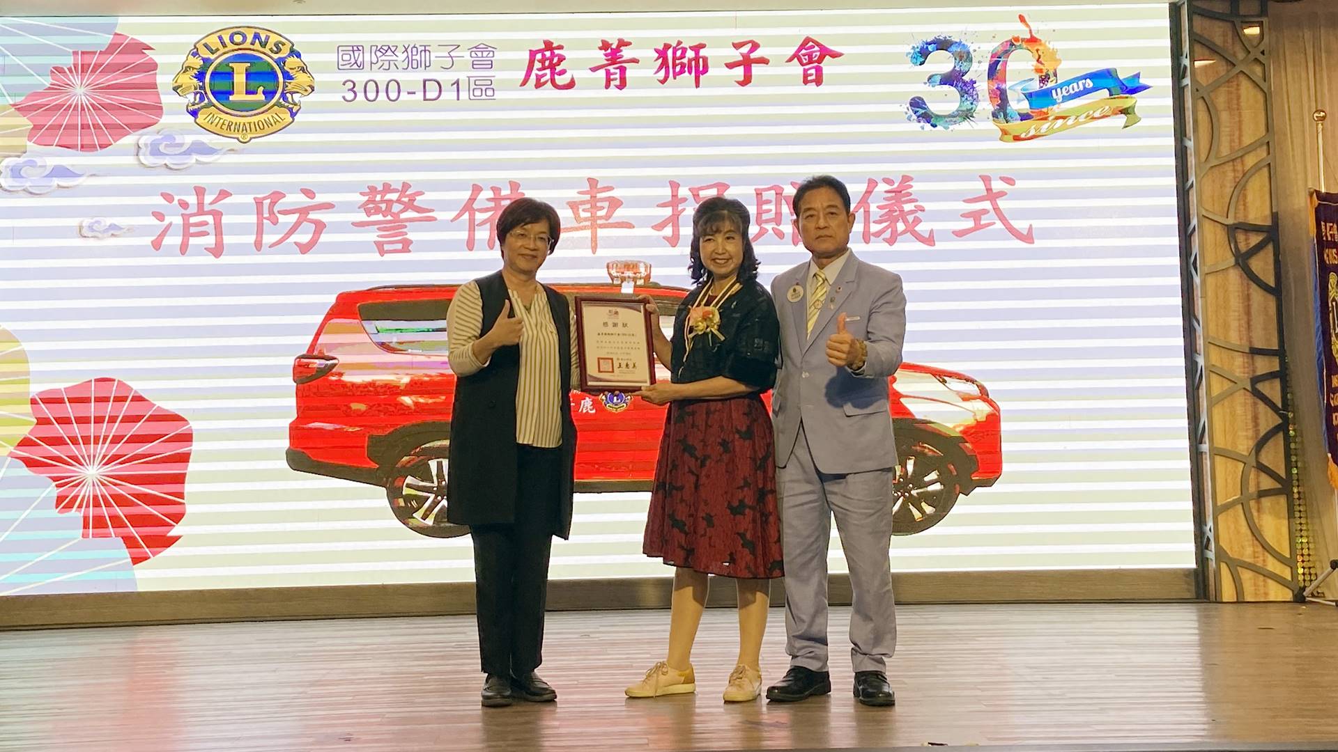 國際獅子會300-D1區鹿菁獅子會會長張玉雯表示,今年適逢鹿菁獅子會創會30周年,為歡慶這個特別的時刻,號召獅友們捐贈一輛災情勘查車(警備車),展現公益精神,意義深遠。捐贈的警備車配備LED警示燈、警報器及無線電等裝置,能有效支援各類災害搶救及災情回報任務。