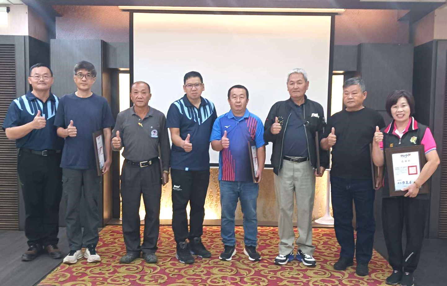 47家道路認養單位獲獎,環保局長張喬維表揚道路認養洗掃優良企業單位並合照。(圖/記者蘇峯毅攝)