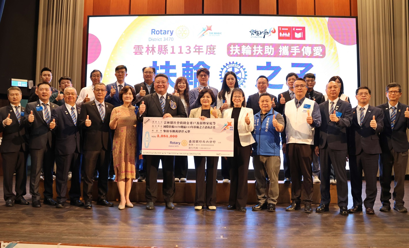 【記者蘇峯毅/雲林報導】雲林縣政府與國際扶輪3470地區攜手合作推動「扶輪之子認養計畫」,今(25)日上午於縣府大禮堂隆重舉行113年度「扶輪扶助 攜手傳愛」捐贈典禮。此次活動共資助257名弱勢家庭兒少,捐款金額高達新台幣308萬4,000元,充分展現扶輪社熱心公益的精神與對弱勢學子的深切關懷。
