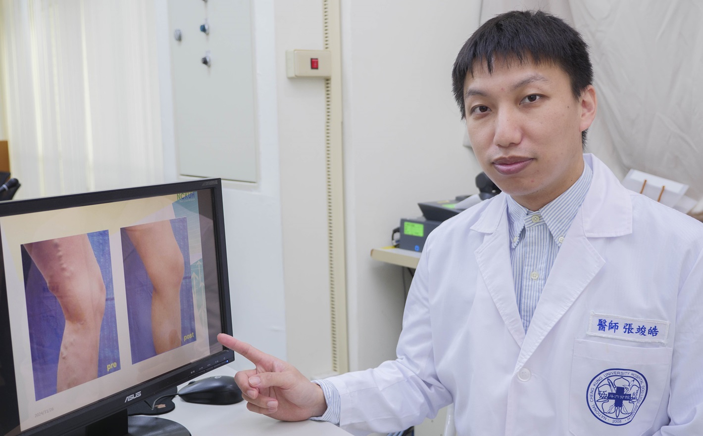 靜脈曲張現在已有微創靜脈內雷射、微創靜脈內微波及硬化劑治療,可達成極小傷口,只有針孔、無刀口、不用縫合、少疼痛,當日即下床行走、隔天出院。(圖/記者蘇峯毅攝)