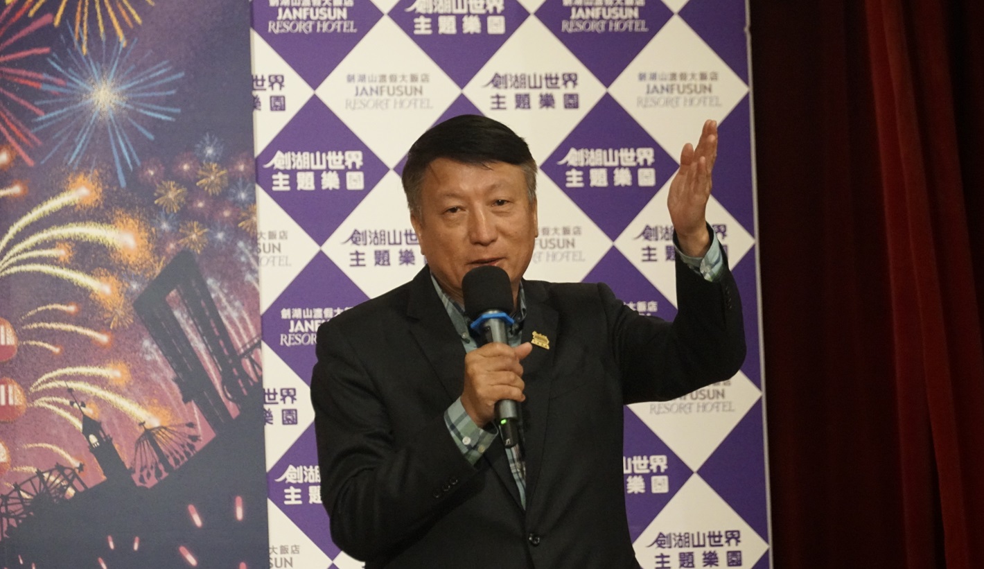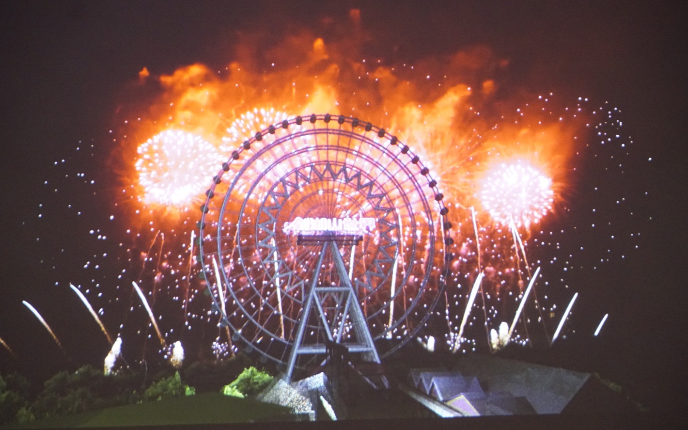 董事長尤義賢表示,這是亞洲唯一以摩天輪為主體的煙火秀,結合無人機科技與環繞山林的花火設計,將帶來無與倫比的震撼效果。(圖/記者蘇榮泉攝)