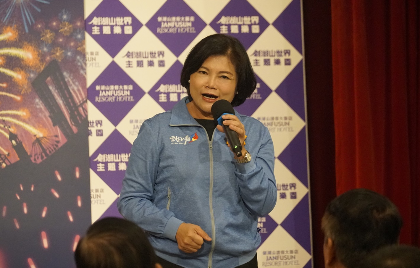 縣長張麗善表示,劍湖山世界跨年煙火秀已成為全台聞名的觀光品牌,透過煙火活動帶動周邊景點與美食,全面提升雲林縣的旅遊吸引力。(圖/記者蘇榮泉攝)