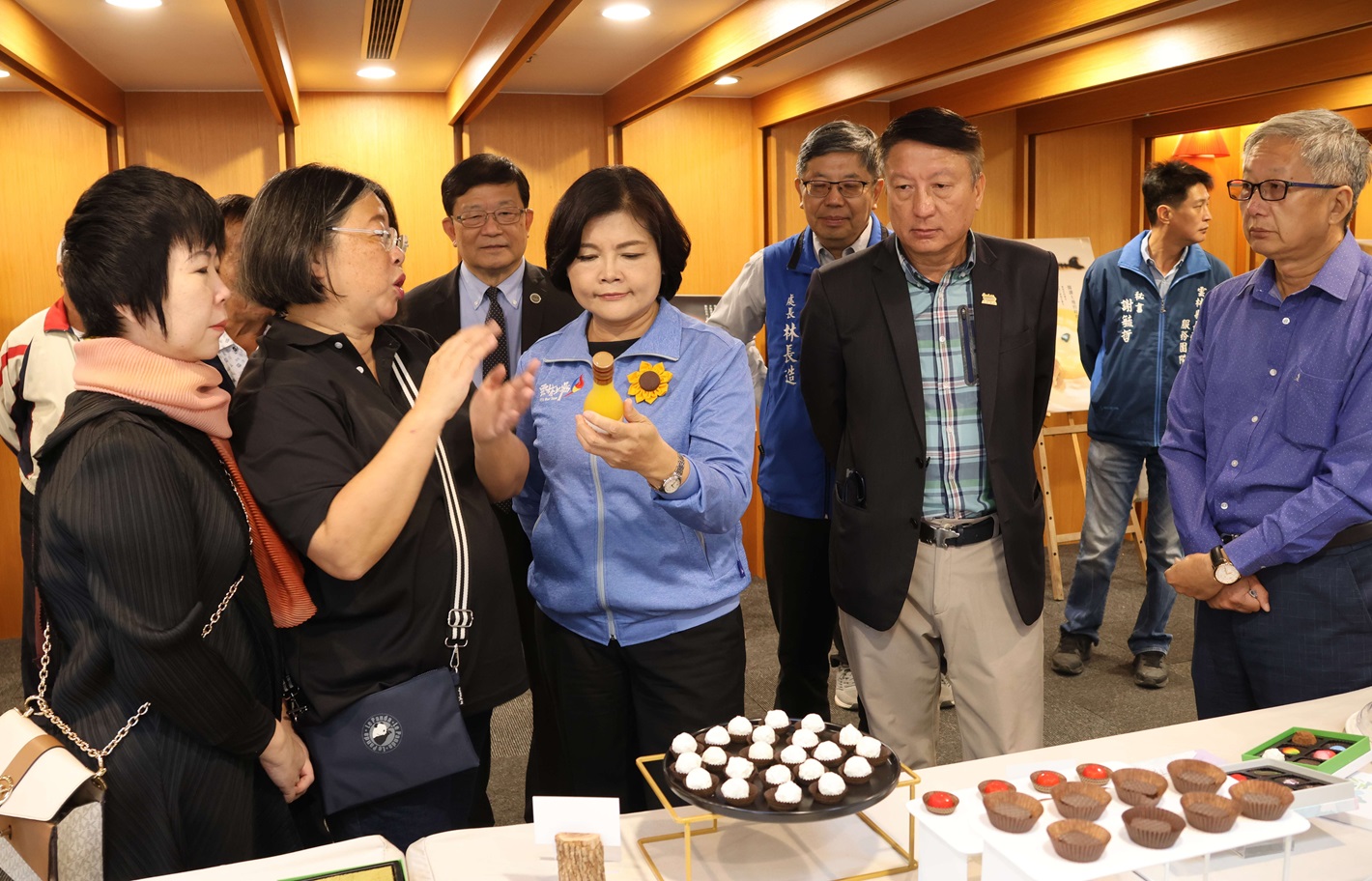 賴雅玫指出,今天的活動現場發表品牌成果有: 土庫驛可可莊園「黎檬bonbon」便是選用華南社區黎檬原汁、「黑夜之舞」加入土庫黑芝麻、「生巧克力」基底則是古坑谷泉咖啡莊園的咖啡豆,「一穀作契蛋黃酥」將整顆紅土鹹鴨蛋以土庫在地契作高粱釀製浸泡。