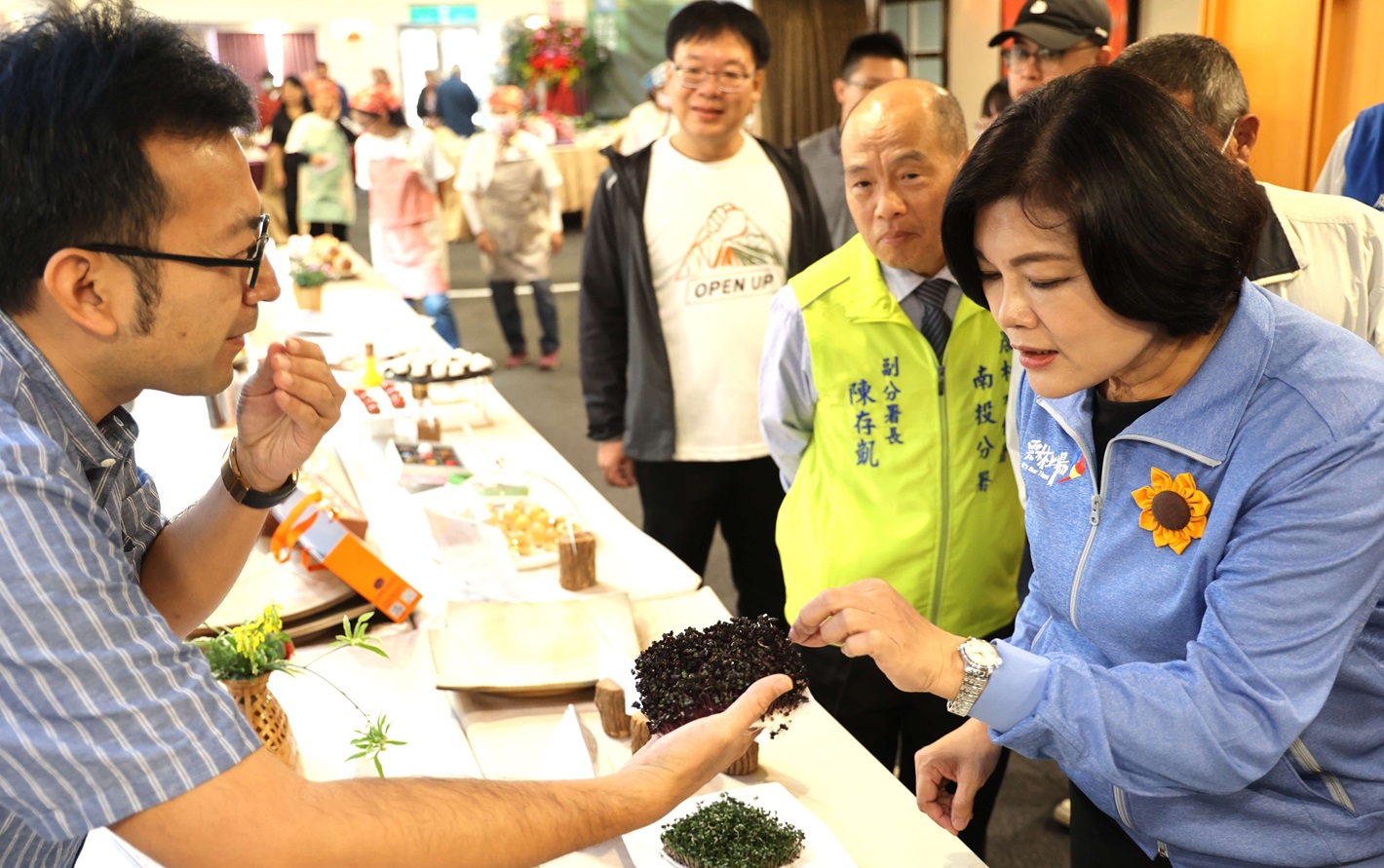 還有已有76年歷史的宏昇芽菜第三代洪正欣回鄉後致力投入傳統芽菜產業轉型智慧農業,現場展示與五星級飯店及米其林餐廳合作入菜的紅莖蘿蔔苗、紫高麗菜苗、蘿蔔苗、青花椰苗…等多款芽菜,獲全國農業達人冠軍、農企業菁創獎等各項大獎肯定。