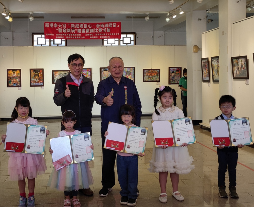 新港奉天宮新港媽祖心藝術國際情美術比賽,董事長何達煌隆重頒獎鼓勵。(圖/記者任芳葵攝)