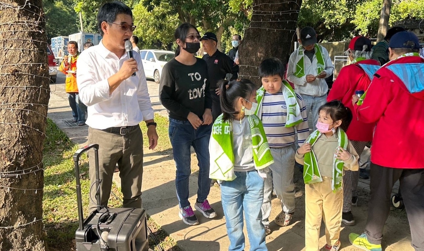 立委劉建國鳴笛後健走活動開跑,許多新住民攜家帶眷參加,除了找大家一起來好好活動促進身體健康以外,也享受在地風味與文化魅力。(圖/記者蘇峯毅攝)