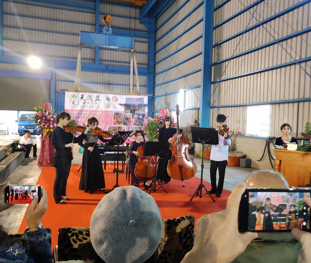 布袋鎮知名元泉益食品工廠在年底十二月的第一天舉行「姊弟琴深冬戀音樂會」。(圖/記者任芳葵攝)