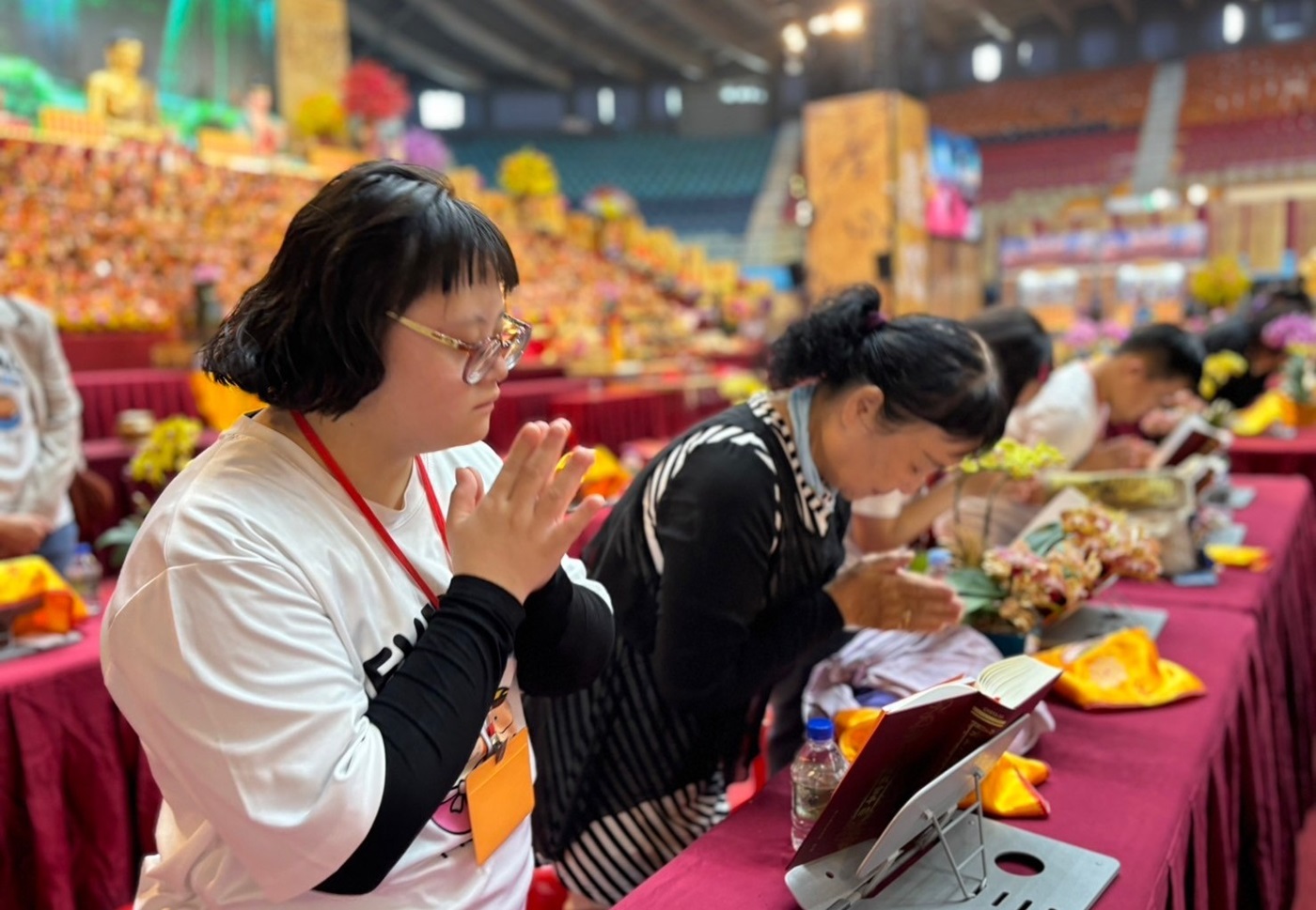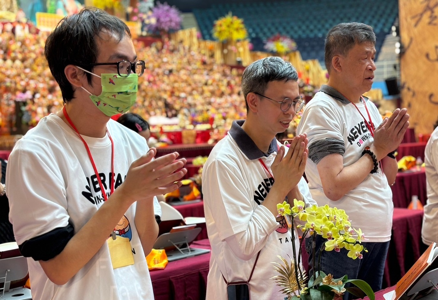 北港朝天宮為慶祝建廟330週年水陸法會中,特別邀請唐氏症基金會「天生我才明倫工坊」的學員前往斗六會場參拜。(圖/唐氏症基金會提供)