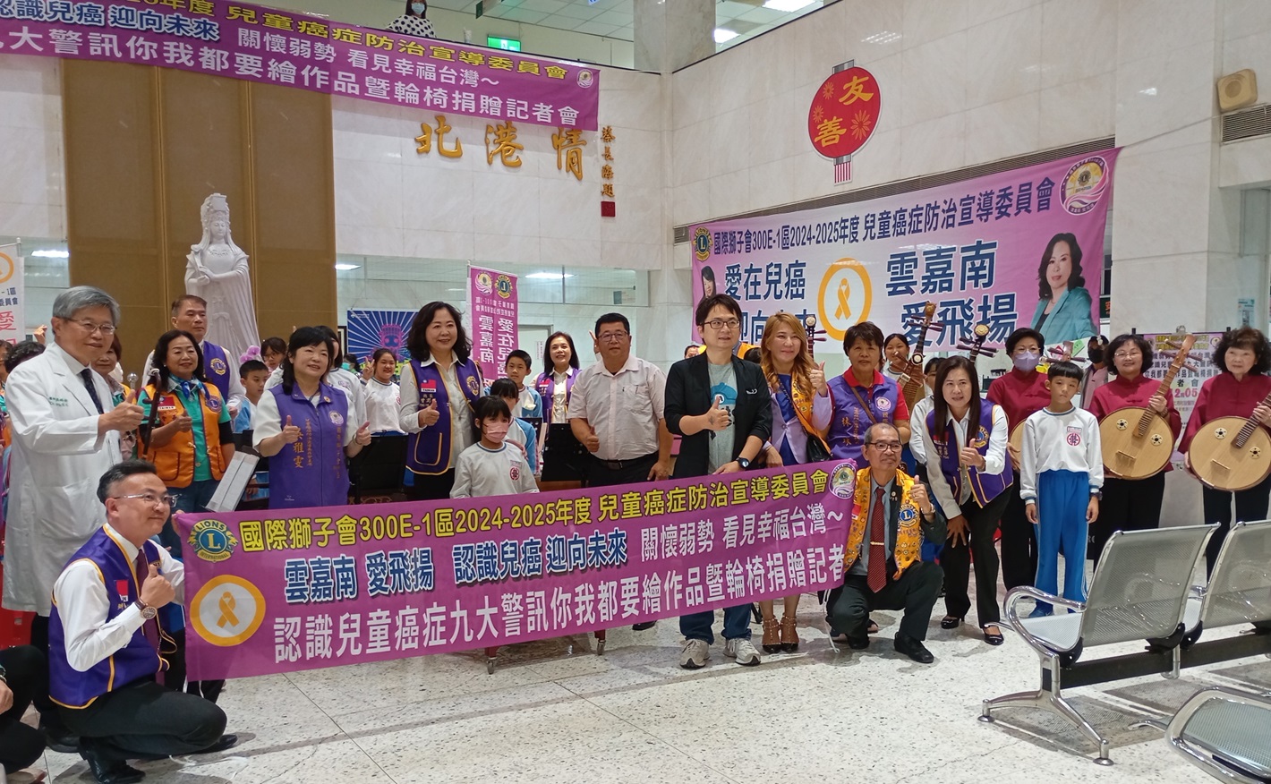 【記者蘇峯毅/雲林報導】國際獅子會300E1區以年度主題「雲嘉南、愛飛揚,認識兒癌迎向未來」,致力於推廣兒童癌症防治知識,並藉由溫馨活動為弱勢群體帶來關懷與希望。繼11月9日於嘉義縣六腳鄉公所舉辦的「認識兒童癌症九大警訊 您我都要『繪』」畫畫活動後,今(5日)天在中國醫藥大學北港附設醫院繼續辦理該項活動並捐贈八部輪椅,希望為家鄉弱勢群體盡一份力,更進一步宣導兒癌防治的重要性,活動感動人心。