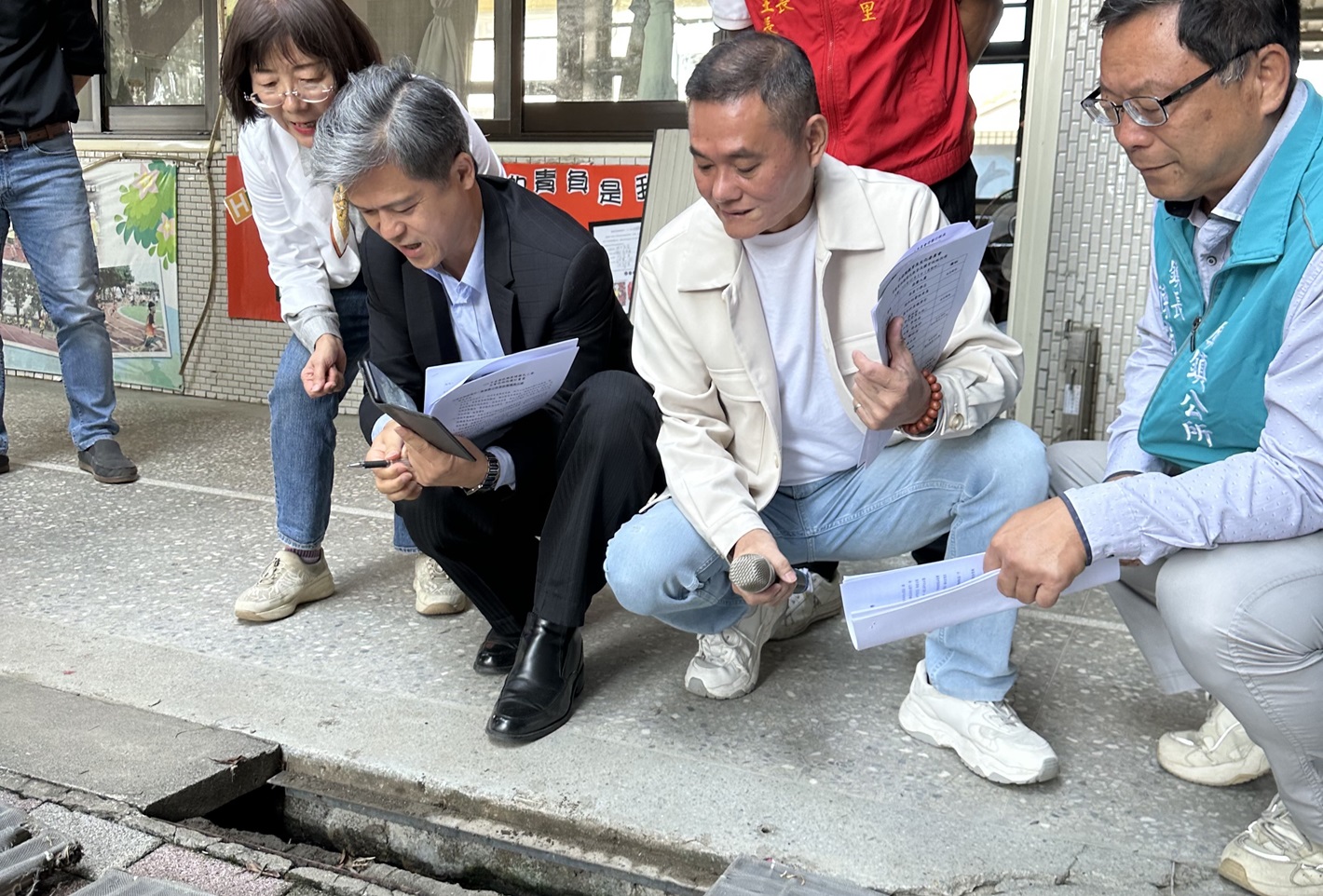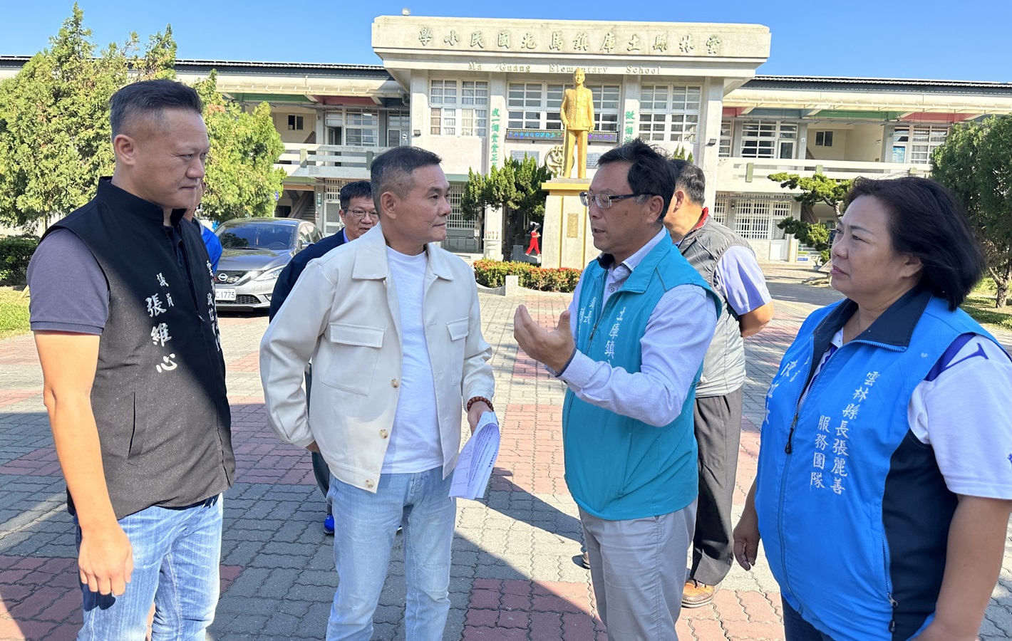 立法委員丁學忠針對雲林縣馬光國小、後埔國小、麥寮國小、麥寮高中及豐安國小等五所學校的校園建設需求進行實地考察。(圖/記者蘇峯毅攝)