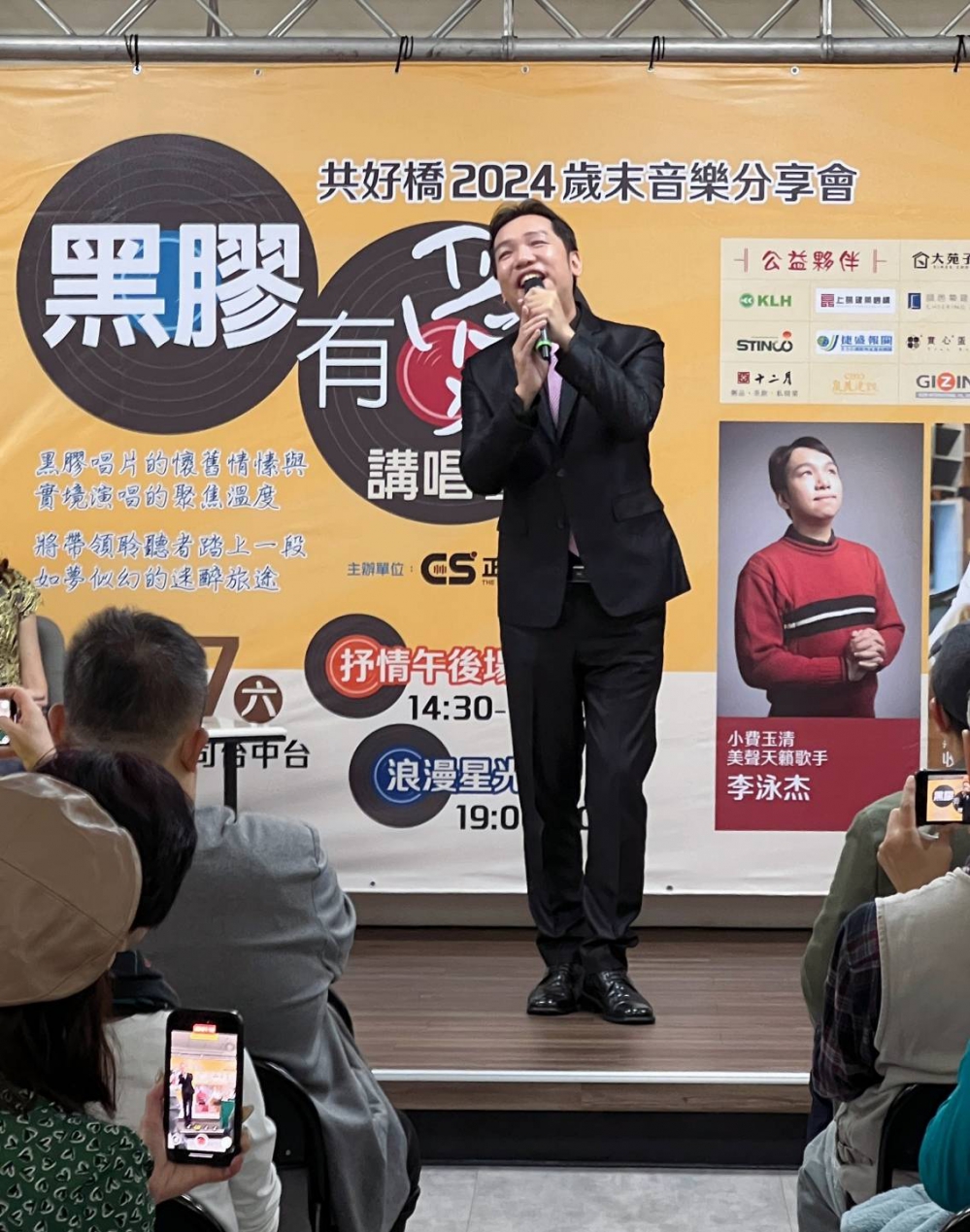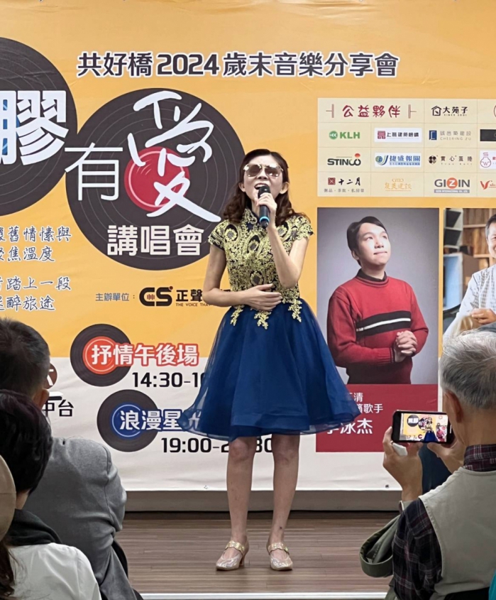 【記者林獻元台中報導】歲末年終將近,正聲台中台與國立中興大學共好橋公益企業群攜手合作,12月7日下午與晚間在電台三樓禮堂各舉辦一場黑膠有愛講唱會,邀請收藏家陳明章現場播放黑膠唱片並分享歌手和歌曲的故事;同時穿插有「台灣莎拉布萊曼」封號的視障女高音紀乃菡與「小費玉清」李泳杰的現場演唱,營造典雅復古的氛圍,為觀眾呈現一場充滿愛與希望的公益音樂會。