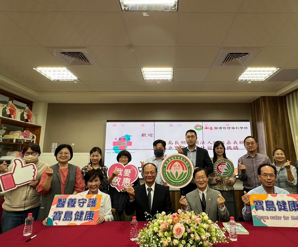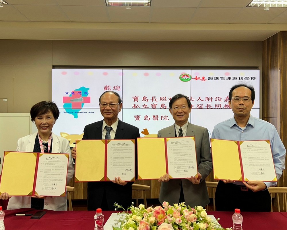 寶島嘉中住宿長照機構及寶島醫院共同與敏惠醫護管理專科學校簽訂產學合作人才共育合約。(圖/記者任芳葵攝)