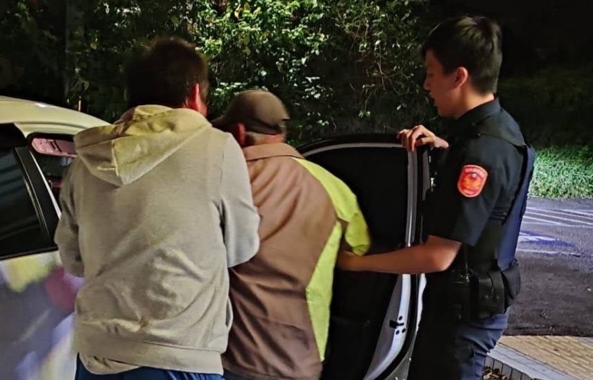 警方熱心攙扶鍾翁至分駐所內稍作休息,並為其提供水與簡單照料。(圖/記者蘇峯毅翻攝)