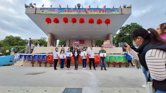 【記者林獻元台中報導】台中市大華國中13日舉行創校30週年校慶暨園遊會活動,除各式攤位、美食及文創小物之外,也結合互動性表演與各科教學成果展示。另邀請傑出校友,也是金鐘獎綜藝節目主持人LuLu黃路梓茵及得利誠健康科技經理廖宜威回母校進行職業達人講座,給予學生莫大鼓勵與信心。教育局表示,市府將持續爭取補助及編列自籌款項挹注,優化師生校園環境。