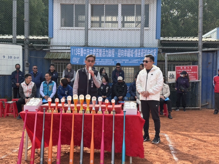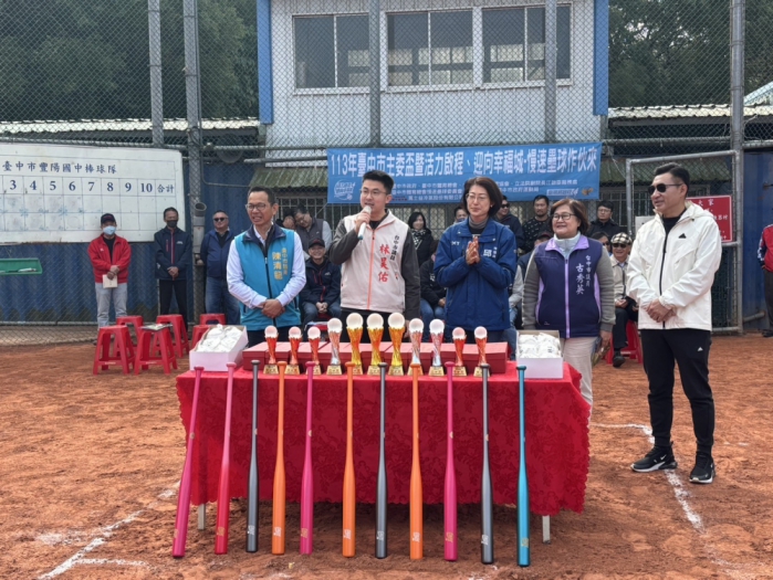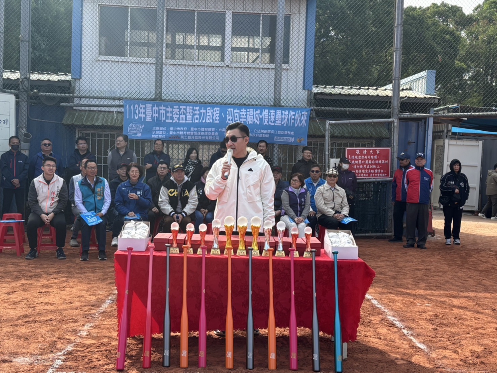 【記者林獻元台中報導】為推動慢壘運動、促進全民運動發展,台中市市政府與台中市體育總會慢速壘球委員會共同辦理的「113年台中市主委盃暨活力啟程、迎向幸福城—慢速壘球作伙來」,15日起為期5週在台中市立慢速壘球場熱鬧開打,台中市運動局代理局長游志祥代表出席開幕典禮,感謝台中市體育總會慢速壘球委員會主任委員同時也是立法院副院長江啟臣,一起來共同推廣全民運動的慢速壘球賽事,讓所有慢壘好手們攜家帶眷一起來進行賽事交流,更期許所有參賽者以球會友,爭取佳績。